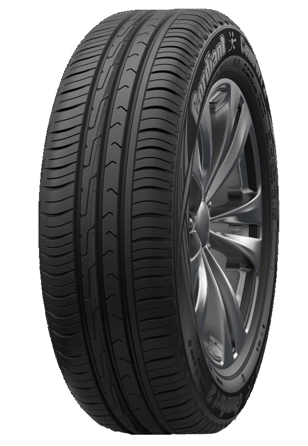 Cordiant Comfort 2 (Кордіант Комфорт 2) – це шини, призначені для експлуатації у літній період року на компактних легкових автомобілях. Їх головними перевагами є комфортний та тихий рух, надійне зчеплення та запобігання акваплануванню. Автошини Кордіант Комфорт 2 замінять у модельному ряді бренду попередницю Cordiant Comfort. За рахунок модернізації протектора та інноваційного складу, з якого виготовлена гума, виробник підвищив рівень експлуатаційних якостей та комфортності. Літні шини Кордіант Комфорт 2 мають асиметричний протекторний рисунок. Він розроблявся з допомогою технології тривимірного моделювання, що дозволило максимально оптимізувати конфігурацію його елементів. Три суцільні ребра бігової доріжки автошини забезпечують стійкість курсового руху, чітке та оперативне виконання команд кермового управління та гарну маневреність. Численні прорізи та насічки формують велику кількість зачіпних кромок, які дозволяють підтримувати високий рівень зчеплення на сухій та мокрій дорозі. Плечові блоки зовнішньої сторони гуми сприяють стійкості автомобіля в поворотах та при виконанні маневрів. Вони мають досить великі розміри та поєднані між собою спеціальним ребром жорсткості. Завдяки таким особливостям будови забезпечується швидке та ефективне гальмування. Величина гальмівного шляху літньої автошини порівняно з попередницею зменшена на 5%. Інноваційна методика розташування блоків протектора гуми та їх чергування з елементами, що мають спеціальні грані «Антишум», забезпечує акустичний комфорт у салоні машини. М'який та плавний хід залежить від еластичності бічних частин автошини. Для їх виготовлення використано міцну гуму з оптимальним балансом жорсткості та еластичності. Хороші амортизаційні властивості також зумовлені полегшеною конструкцією каркаса. Він виготовлений з інноваційного корду, і забезпечує високу стійкість до механічного впливу, навантажень та деформації. Міцність та надійність конструкції дозволила підвищити продуктивність та витривалість автошини, а також збільшити робочий ресурс на 16%. Система дренажу автошини складається із чотирьох широких окружних каналів, поперечних плечових канавок та вигнутих прорізів на ребрах центральної частини протектора. За рахунок великої кількості та місткості цих елементів пропускну здатність системи шини значно збільшено, що позитивно позначилося на ефективності водовідведення. В результаті, запобігається виникненню аквапланування та підтримується відмінне зчеплення з мокрою дорожньою поверхнею. Гума виготовлена з унікального компаунду, до якого входить високоякісна сировина, силіка та різні інноваційні полімери. Завдяки оптимальному поєднанню компонентів вона стала міцнішою, підвищилася її стійкість до зносу, високої температури та механічних пошкоджень. Розробивши такий гумовий шар, виробнику вдалося знизити споживання палива на 11% порівняно з попередньою моделлю. Літні автошини Кордіант Комфорт 2 – це: гідний рівень зчіпних властивостей; мала шумність та м'якість руху; бездоганне гальмування; відсутність аквапланування; гума підвищеної стійкості до зношування; оптимальне споживання палива. Шинну продукцію під брендом Cordiant виготовляє холдинг «СІБУР». Гума цієї торгової марки цінується за високу якість відмінні експлуатаційні властивості, надій