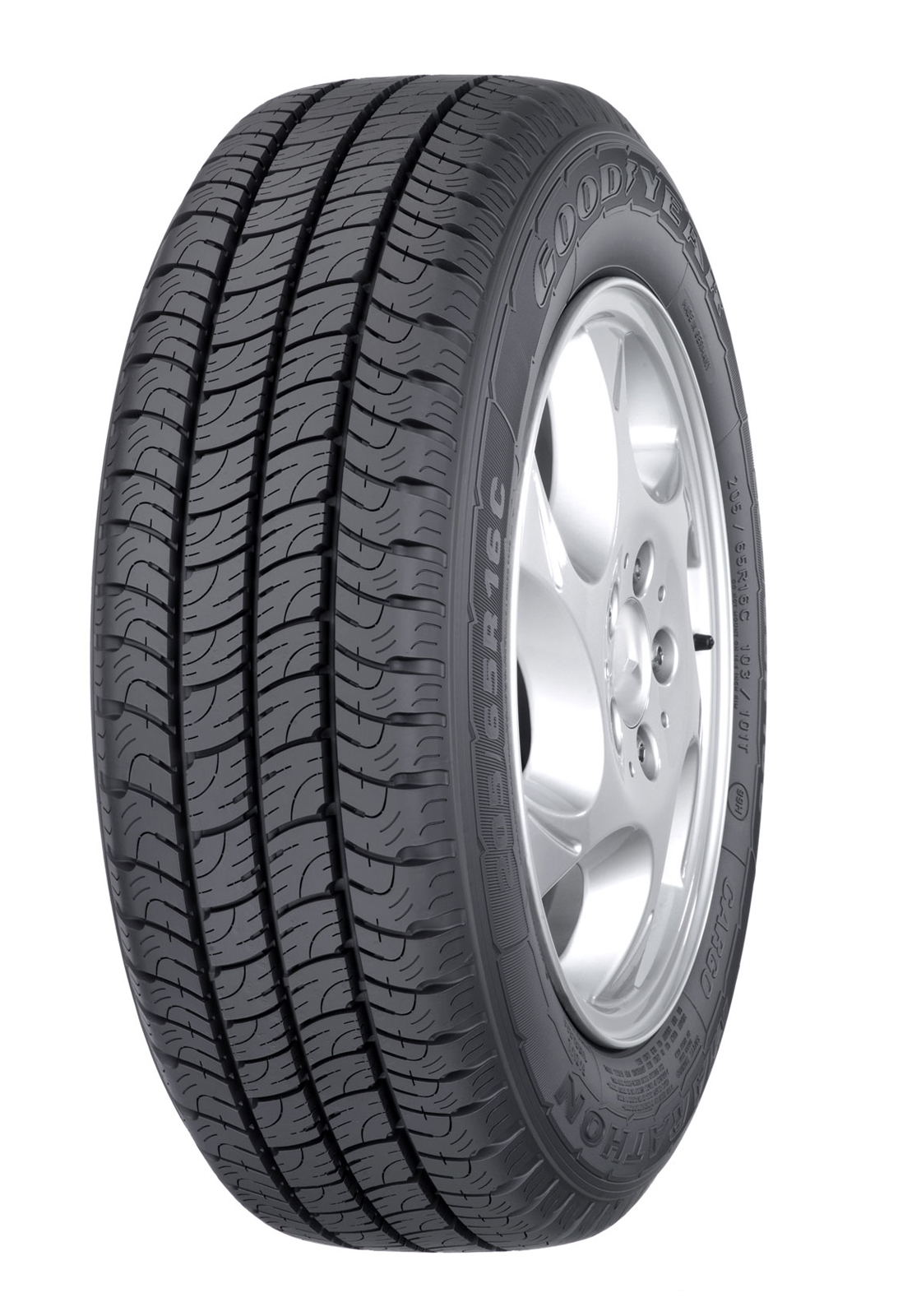 Літня комерційна шина Goodyear Cargo Marathon відрізняється від численних своїх конкурентів не тільки вдало підібраною і назвою, що буквально говорить за себе. Ключовою її перевагою є дуже висока економічна ефективність. Вона досягається за рахунок чудових експлуатаційних властивостей, які дозволяють суттєво знизити витрати на використання вантажних автомобілів малої вантажопідйомності. Саме їм вона і була розроблена. Протекторний малюнок з широкими поздовжніми ребрами Істотна частина переваг цієї моделі забезпечується за рахунок особливостей в дизайні її протекторного малюнка. Він містить чотири дуже широкі поздовжні ребра, кожне з яких складається з безлічі масивних блоків чотирикутної форми. Таке компонування покращує відразу кілька важливих експлуатаційних властивостей. Насамперед, це зчеплення та керованість на сухих дорогах, що досягаються за рахунок великих розмірів плями контакту. Крім того, масивність протекторних ребер значною мірою оптимізує розподіл зовнішнього навантаження по ньому, роблячи її дуже рівномірною. Це, своєю чергою, перешкоджає розвитку нерівномірного зносу разом із цим збільшує термін служби шини. Відмінна стійкість до аквапланування Між протекторними блоками розташовуються широкі та глибокі дренажні канавки, з'єднані між собою та із зовнішнім середовищем численними поперечними каналами. Продуктивність дренажної системи додатково збільшується за рахунок їх вигнутої форми та розташування проти напрямку руху, що, у свою чергу, тягне за собою покращення зчеплення на мокрій дорозі. У зв'язку з цим не можна не згадати про гумову суміш протектора. Її склад відрізняється підвищеним вмістом силіки, завдяки чому шина демонструє впевнену поведінку мокрою дорогою. Збільшити частку вмісту цього компонента без шкоди іншим експлуатаційним властивостям вдалося за рахунок додавання до складу компаунду сучасних полімерів, що підвищили його однорідність та міцність протектора на розрив. Основні особливості шини Goodyear Cargo Marathon - чотири поздовжні ребра, складені з масивних блоків, покращують курсову стійкість, перешкоджають нерівномірному зносу, знижують витрату палива, підвищують зчеплення на сухій дорозі; - численні дренажні канавки та компаунд із підвищеним вмістом силіки покращує зчіпні властивості на мокрій дорозі; - Оптимізована форма та розташування протекторних блоків знижує рівень шуму та вібрацій при русі.
