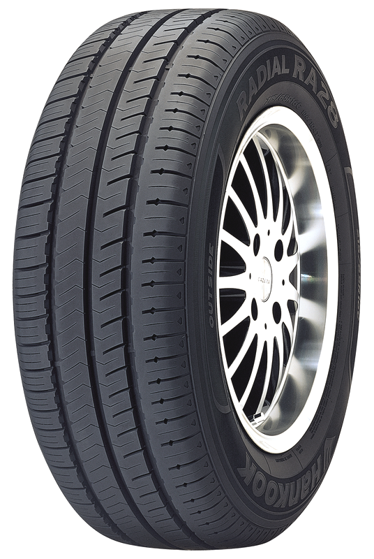 Літня гума Hankook Radial RA28 розроблена під умови їх використання на комерційних міжміських пасажиро- та вантажоперевезеннях. Вони встановлюються на пасажирські та вантажні мікроавтобуси, а також на невеликі малотоннажні вантажівки. Переваги використання шин Ханкук Радіал РА 28: Високі швидкісні характеристики. Відсутність блоків у асиметрично-ненаправленого малюнка збільшило швидкісні характеристики під час руху міжміськими трасами. Висока економічність. Відсутність блоків знизила опір коченню, що спричинило економію палива двигуном на кожному кілометрі пробігу. Висока курсова стійкість. Широкі ребра жорсткості та плечові зони протектора гарантують курсову стійкість як під час руху, так і при здійсненні швидкісних маневрів. Висока курсова стійкість забезпечується, у тому числі, і при русі малотоннажної вантажівки при максимальній її завантаженості. Високе зчеплення з дорогою. Короткі поперечні канальці, що розкреслюють поверхню протектора, збільшують якість зчеплення з дорогою. Асиметричне розташування зазначених канальців перешкоджають виникненню осьових зсувів мікроавтобуса при його швидкісному маневруванні та при його екстреному гальмуванні. Ефективний дренаж. Під час сильного дощу по трьох широких і глибоких кільцевих каналах видаляється основний потік води. Ефективний дренаж шини що утворює дренажну систему шини Hankook Radial RA28 забезпечує стійкий рух мікроавтобуса мокрою трасою без ефектів ковзання та аквапланування. Висока маневреність. Плавний перехід від плечової зони Ханкук Радіал РА28 у боковину покращує маневрові властивості мікроавтобуса та скорочують період відгуку на команди рульового колеса.
