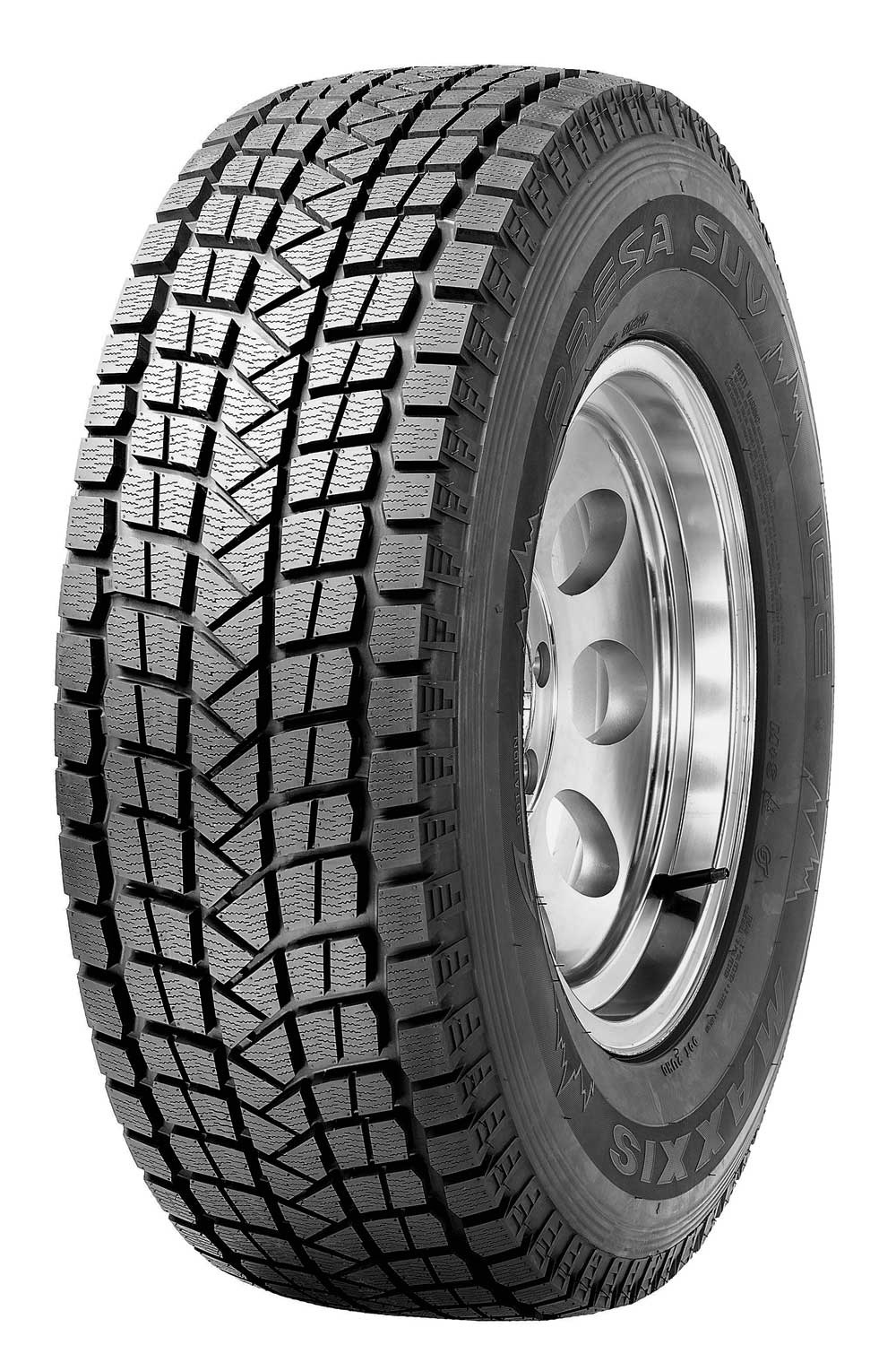Зимова автомобільна гума Maxxis SS01 Presa Ice SUV орієнтована на позашляховики та легкові автомобілі, що мають підвищені позашляхові характеристики та повнопривідну трансмісію. Гумовий компаунд Впровадження силіки та спеціальних полімерних сполук, до складу морозостійкого зимового гумового сплаву автомобільної шини Maxxis SS01 Presa Ice SUV, підвищило стійкість до наднизьких температур повітря, що позитивно позначилося на показниках стійкості даної моделі до стирання та зносу. Дизайн протекторного малюнка Великі центральні жорсткі блоки протекторного малюнка автошини Максіс СС01 Преса Айс СУВ створюють широку пляму контакту, стабілізують поведінку автомобіля та підвищують показники безпеки руху. Достатньо велика кількість як поперечних, так і поздовжніх водовідвідних каналів, гарантує оперативне видалення води та вологи з-під коліс машини, що зберігає короткий гальмівний шлях позашляховика та надійне зчеплення коліс з мокрим асфальтом. Характерні відмінності та особливості зимової автогуми Максіс СС01 Преса Айс СУВ: Особлива будова протекторного малюнка забезпечує найвищі їздові та експлуатаційні показники; Новий еластичний склад гумової суміші, що поєднується із системою ламелізації блоків протектора, знижує шум та вібрації, що виходять від коліс машини, що підвищує загальні характеристики комфорту руху; Оптимізована будова та розміщення ламелів суттєво покращила якість зчеплення та ефективність гальмування машини на слизьких дорожніх покриттях; Продумана система самоочищення протекторного малюнка відмінно справляється з мінімізацією можливості гідропланування позашляховика під час їзди мокрим асфальтом і талим снігом.