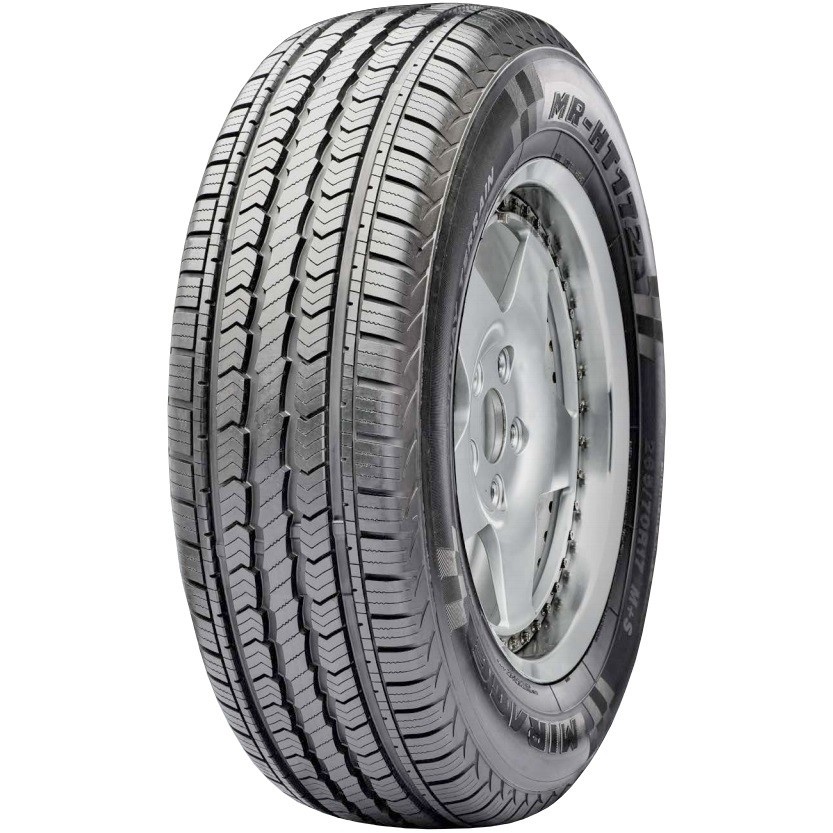 Всесезонна гума Mirage MR-HT172 – модель для позашляховиків. Mirage – це один із брендів компанії Shandong Hengfeng Rubber & Plastic, яка з 1995 року виробляє шини для автомобілів різних марок і класів. Продукція цього бренду є досить популярною серед споживачів бюджетного сегменту шинного ринку. Заявлений виробником клас НТ (Highway Terrain) має на увазі експлуатацію автошини переважно на асфальтованих дорогах (шосе). Характеристики автосешини Міраж МР-ХТ 172: високий рівень продуктивності; відмінне зчеплення на мокрій, сніговій, обмерзлій поверхні; термостійка, жорстка гума; опір ковзанню та плануванню; функція самоочищення. Асиметричний дизайн автошини Mirage MR-HT172 забезпечує гарні експлуатаційні характеристики та безпеку руху. Будова центральної зони гарантує відмінні зчіпні показники як на сухій, так і на мокрій, сніговій та крижаній дорозі за рахунок нерозривного центрального ребра та великих блоків інших ребер. Їх різноспрямованість та оснащення ламелями дозволяє автомобілю стійкіше рухатися на високій швидкості у складних погодних умовах, а також підвищує якість управління. Ламелізація плечових зон протектора впливає на силу гальмування та виконання маневрів та поворотів без бічних заметів, особливо на зимових дорогах. Оптимальний баланс жорсткості та еластичності, який демонструє гума протектора, забезпечує старт без пробуксовки, швидкий набір швидкості та посилює адгезію та гальмівні властивості. Опір аквапланінгу та слешингу реалізовано за рахунок ефективності дренажної системи. При проектуванні шини Міраж МР-ХТ 172 інженери врахували всю сезонність застосування та потреби позашляхових автомобілів. Тому всі елементи конструкції були максимально посилені для запобігання деформації та пошкоджень при дії значних навантажень та зовнішнього впливу. Так жорсткіший підканавковий шар захищає від проколів і порізів, сталевий каркас і нейлоновий шар ущільнювача підвищує загальну міцність автошини. У особливий компаунд, з якого виготовлена гума, увійшли натуральні та інноваційні компоненти. Завдяки їм збільшена термостійкість, зносостійкість та міцність автошини, що забезпечило 11% підвищення величини пробігу шини в порівнянні з моделями конкуруючих брендів.