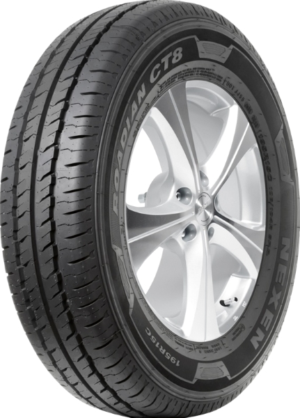 Літня шина Nexen Roadian CT8 призначена для малотоннажних комерційних автомобілів. Модель спроектована з використанням технологій комп'ютерного моделювання та сучасних матеріалів, що забезпечує високі експлуатаційні характеристики. Два варіанти виконання Шина пропонується південнокорейським виробником у двох варіантах виконання. Версія HL відрізняється можливістю використання протягом усього року, у тому числі й узимку. Саме цим обумовлено застосування в ній іншого протекторного малюнка з численними ламелями та окремими блоками. Підвищена вантажопідйомність Однією з характерних рис протектора шини є будова його плечових зон. Вони формуються потужними блоками. Їхня рухливість обмежена спеціальними перемичками, що оптимізує розподіл зовнішнього навантаження, підвищуючи вантажопідйомність і перешкоджаючи нерівномірному зносу. Ці властивості додатково посилюються спеціальними квадратними виїмками на бокових гранях плечових блоків. Оптимізовані канавки у центральній частині Ламелі у поздовжніх ребрах центральної частини прорізані на половину глибини протектора. Завдяки такому рішенню ці елементи отримали додаткову функціональність. Крім формування зчіпних кромок, вони підвищують стійкість поздовжніх ребер до деформаційних змін. Це покращує курсову стійкість на великій швидкості, а також забезпечує більш плавну передачу різноспрямованих прискорень на рульову колонку без шкоди швидкості та точності цього процесу. Основні особливості Nexen Roadian CT8 - два варіанти виконання; - Жорсткі плечові блоки підвищують вантажопідйомність; - спеціальні квадратні виїмки у плечових зонах покращують надійність; - Ламелі в центрі прорізані на половину глибини протектора, що підвищує курсову стійкість та зручність управління.