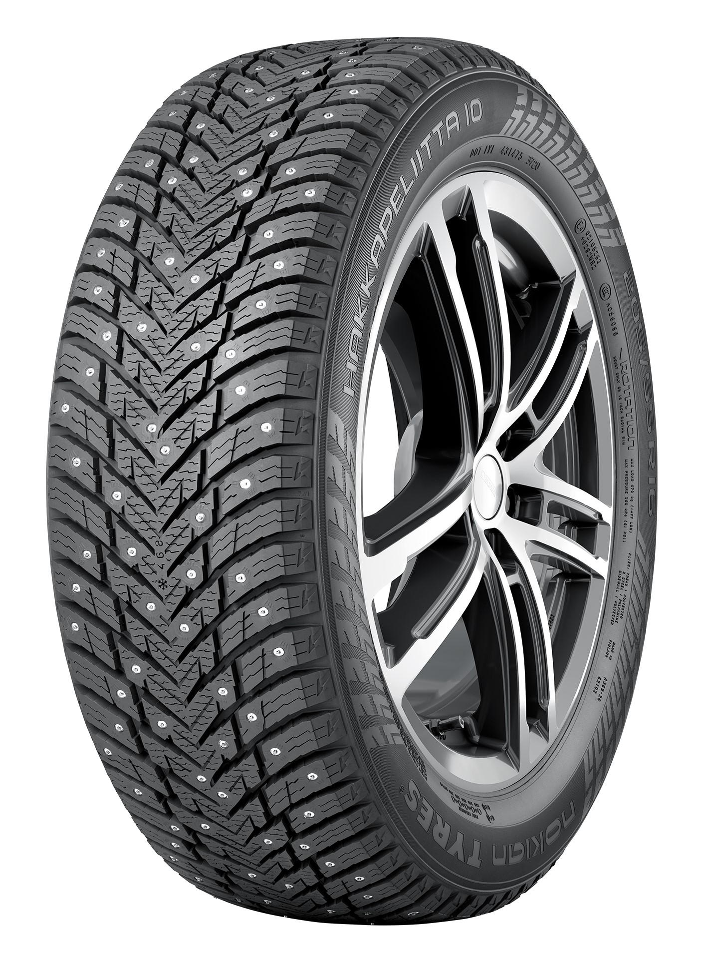Шини Nokian Hakkapeliitta 10p оснащується шипами протиковзання двох типів у заводських умовах. Оптимізована схема розміщення шипів зумовила покращення керованості та зчіпних властивостей моделі. В обох плечових секціях нові шипи у формі зірки повернуті на 180 градусів, що зроблено для покращення поперечного зчеплення та маневреності на слизьких зимових покриттях. При цьому краї шипів, що займають позиції в центральній секції протектора, завжди знаходяться в оптимальному положенні підвищення щільності контакту шини з льодом при прямолінійному русі.