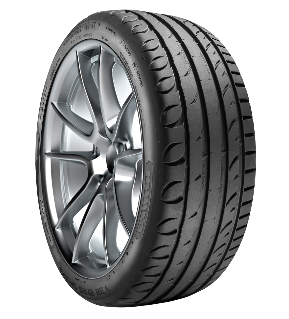 Асиметричний малюнок протектора та жорсткі ребра забезпечують легкість та стабільність керування на будь-якій швидкості пересування. На сухій дорозі працюють плечові блоки High Performance з гострими кромками і силікоутримуюча гумова суміш, а на мокрій – ефективна дренажна система, утворена чотирма окружними каналами та численними поперечними канавками, які за рахунок швидкої евакуації води із зони контакту підвищують стійкість легкового транспортного засобу. Присутність силіки у складі гумової суміші протектора Orium HP High Performance також позитивно впливає на зчіпні властивості шини у вологих умовах та сприяє підвищенню легкості кочення, а відповідно і зниженню витрат палива, що безпосередньо залежить від коефіцієнта опору коченню шини. Крім того, можна сміливо говорити про високу зносостійкість даної моделі. Вона обумовлена комп'ютерною оптимізацією каркасу шини та дизайну протектора, а також жорсткістю елементів та глибиною протектора.