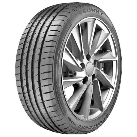 Літня шина Sunny NA305 призначена для середньорозмірних легкових автомобілів, найбільш динамічних версій. Експлуатаційні властивості моделі підібрані з необхідністю забезпечити максимальну ефективність та безпеку під час руху на великій швидкості. Протекторний малюнок виконаний у несиметричному спрямованому дизайні. Плечові зони збільшені у розмірах, завдяки чому при маневруванні досягається висока стійкість. При цьому жорсткість розташованих тут елементів дозволяє швидко і точно передавати бічні сили прискорення на кермо, чим полегшується процес керування автомобілем. Профіль бігової частини протектора оптимізований таким чином, щоб під навантаженням вагою автомобіля зона, що контактує з дорожньою поверхнею, максимально збільшувалася і набувала практично прямокутної форми. Це рішення дозволило не тільки підвищити зчіпні властивості на сухому покритті, але й надати стабільності. В умовах дощу ці якості зберігаються завдяки збільшеному об'єму поздовжніх дренажних канавок та численних поперечних прорізів. Основні особливості Sunny NA305 – несиметричний протекторний малюнок ефективний на високій швидкості; - Поліпшені зчіпні властивості на сухому покритті за рахунок збільшених розмірів плями контакту; - інтенсивне прискорення та уповільнення на мокрому покритті завдяки численності поперечних прорізів; - легкість в управлінні забезпечується жорсткістю та збільшеними розмірами блоків плечових зон; - відмінна курсова стабільність на будь-якій швидкості за рахунок суцільної структури протекторних ребер у центральній частині.